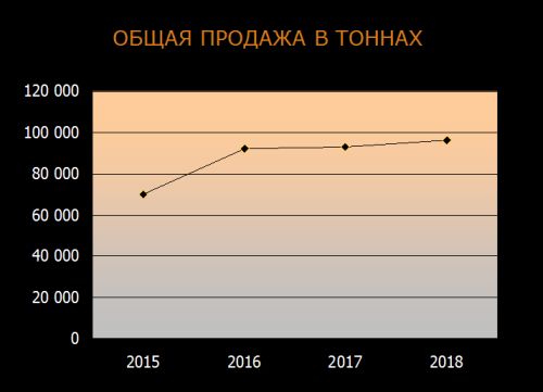 Расположенный рядом рисунок показывает развитие фирмы Nova Trading S.A. - рост продажи нержавеющей стали и aлюминия в тоннах на отрезке нескольких лет.